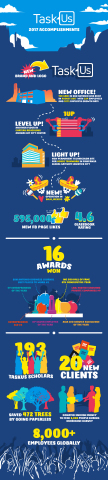 SANTA MONICA, Calif.-(BUSINESS WIRE)-For TaskUs, 2017 was another impressive year. The recognition over the past year of both the company and its founders, CEO Bryce Maddock and President Jaspar Weir, reflects a continual shift from being seen as ambitious young upstarts to well-established industry leaders.