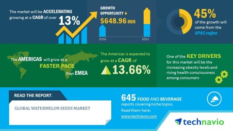 LONDON-(BUSINESS WIRE)-The latest market research report by Technavio on the global watermelon seeds market predicts a CAGR of more than 13% during the period 2017-2021.