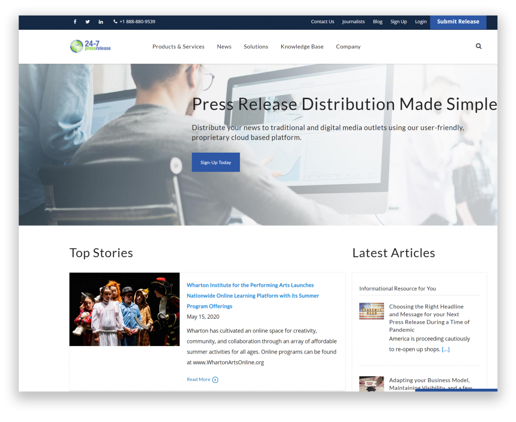 24-7 facilitates distribution across every country in all sectors, famous newspapers, and media outlets across Europe, Asia, Latin America, the USA, and Canada. Their premium package distributes your news to PR Newswire’s 4500+ websites for maximum online visibility, while their popular package distributes your news to both online and traditional media reaching newspapers and journalists.