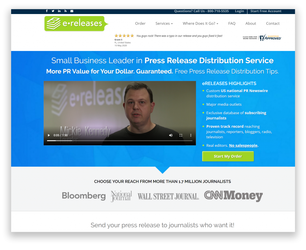 eReleases is a press release distribution service specifically founded for small businesses. eReleases offers affordable access to large distribution companies and this is good news for small businesses who are on a tight budget but want to reach a wide audience. For an extra fee, customers can get next business day distribution and press release writing. eReleases’ press release distribution plans start from $299.